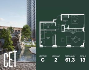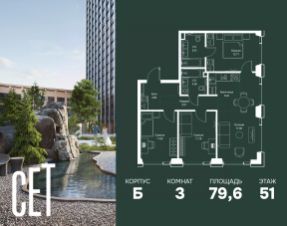 Прямая продажа от застройщика. В ЖК Сет продается 2-комнатная квартира площадью 51.28 м², расположенная в корпусе А, на 31 этаже 52 этажного дома. Сет имеет стратегически выгодное расположение в ЗАО, в районе с большой историей и блестящим будущим: между природной зоной долины реки Сетунь и Кутузовским проспектом. В рамках возведения первой очереди предусмотрено три корпуса высотой 18, 45 и 59 этажей. На верхних этажах спроектированы общедоступные смотровые площадки с панорамным обзором на центр столицы. Преимущества проекта: • Функциональные планировочные решения • Контроль проникновения через входную дверь • Система управления освещением и температурой в квартире • Система защиты от протечек с функцией перекрытия воды • Вход в подъезд по биометрическим считывателям Face ID • Скоростные лифты • Двухуровневый подземный охраняемый паркинг на 495 машино-мест Застройка Сет включает в себя не только жилые корпуса, но и инфраструктурные объекты. Все необходимое для повседневного комфорта будет расположено в шаговой доступности: • Фитнес-Клуб с бассейном • Ведущая городская школа, детский сад и школа искусств • Центр культуры и досуга • Медицинский центр • Кафе и рестораны Расположение комплекса: Пешком: • Метро "Давыдково" - 17 минут • Парк "Долина реки Сетунь" - 3 минуты • Открытие новых станций метро в шаговой доступности в будущем Инфраструктура: Разнообразить свой день резиденты Веер смогут также проводя больше времени на свежем воздухе. Двор разделен на 4 зоны разных эмоций и действий, которые пересечены и соединены веерными прогулочными маршрутами: • Спортивная площадка устроена в глубине "Кленовой рощи" • В "Чайном домике" будет создан навес с утеплением для отдыха в любую погоду • Площадки для детей воплотятся в "Волшебный лес" с цветами, зеркалами и световым дизайном • "Центральная площадь" устроена у водного оазиса живописного пруда. На машине: • "Москва-Сити" - 15 минут • Садовое кольцо - 20 минут • ТЦ "Океания" - 8 минут • ТЦ "Времена года" - 13 минут • Сколково - 12 минут • Гребной канал - 17 минут Компания MR предлагает своим клиентам специальные условия приобретения квартир в рамках программ ипотечного кредитования от банков-партнеров. Купить квартиру первичка в округе ЗАО в Москве.