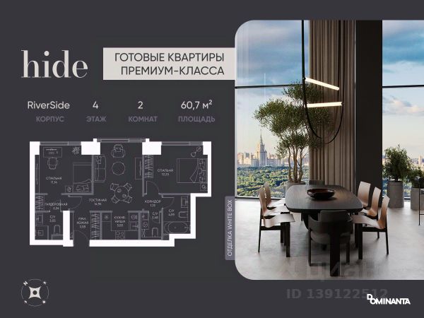 Прямая продажа от застройщика! Дом сдан, ключи в день покупки. Предлагается просторная 3-комнатная квартира 71.7 м² с отделкой white box на 14 этаже в проекте hide — жилом небоскребе премиум-класса от Dominanta и MR. ТОП-ВИДЫ НА 360: Воробьевы горы, Москва-Сити, Лужники, центр, МГУ, Парк Победы. ПРЕСТИЖНАЯ ЛОКАЦИЯ: Расположение на границе районов Раменки и Хамовники: быстро до ТТК, Москва-Сити, а рядом природа — Воробьевы горы и заказники Долины реки Сетунь. КОМФОРТ НОВОГО УРОВНЯ: панорамное остекление, "Умный дом", продуманная планировка евроформата. LIFE SPACE ДЛЯ РЕЗИДЕНТОВ: видовая терраса, хоум-офис, фитнес зал, бьюти-кабинет, общественная гостиная. Более 50% двора — ландшафтный парк с холмами и "парящими" мостами. СПЕЦИАЛЬНОЕ ПРЕДЛОЖЕНИЕ: скидка 10% при полной оплате и ипотеке без субсидий — действует до 28.02.2026. Не упустите шанс!*Стоимость в объявлении указана со скидкой.