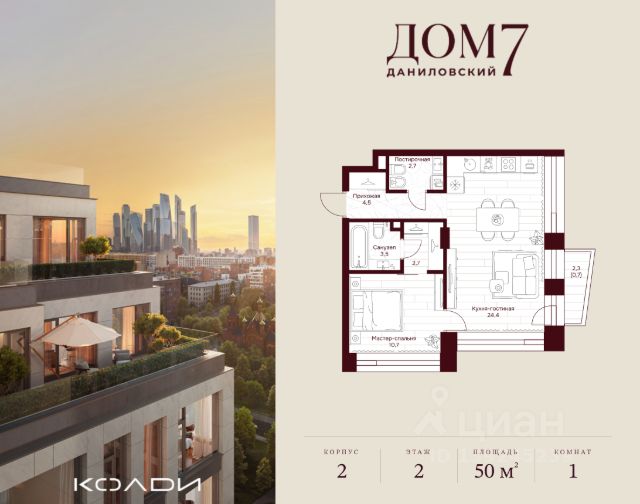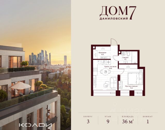Продается 1-к квартира общей площадью 33.40 кв.м на 3 этаже в жилом квартале премиум-класса "Дом 7 Даниловский". Срок сдачи: 2 квартал 2027 года. Клубный жилой квартал "Дом 7 Даниловский" расположится в тихом уголке "старой Москвы" поблизости от центра города, на улице Серпуховский Вал. Приватный проект вдали от городского шума станет оазисом спокойствия и гармонии среди суеты мегаполиса. Автором архитектурной концепции стало именитое российское бюро "Остоженка". В проекте представлены квартиры как с предчистовой отделкой white box, так и с дизайнерской чистовой отделкой, а также 5 видовых пентхаусов с собственными террасами. На первых этажах расположатся разнообразные сервисы, включая: • Фитнес-зал; • Камерный ресторан; • Детские игровые; • Коворкинг и переговорные; • Лаунж-зоны. На внутренней территории квартала появится всесезонный сад площадью 1 га, разработанный архитектурной дизайн-студией GAFA, где каждый найдет то, что ему по душе: места для занятий спортом и настольным теннисом, детские площадки, уединенные уголки для медитации и спокойного отдыха. Для удобства жителей предусмотрен Консьерж-сервис 24/7. В подземной части дома будет расположен паркинг на 137 машино-мест, а также келлеры. На съезд и выезд будет работать система распознавания номеров. "Дом 7 Даниловский" это жизнь премиум-класса, которой хочется наслаждаться каждый день.