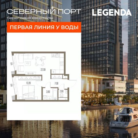 Продается 1-комн. квартира с предчистовой отделкой в ЖК "Северный Порт" на 19 этаже. Общая площадь: 47.8 кв.м., жилая: 11.5 кв.м., площадь просторной кухни-столовой: 21.5 кв.м. Все окна выходят на одну сторону. В квартире один совмещенный и один раздельный санузел. Высота потолков 3.15 м. Квартира находится в корпусе 7.1. Дом монолитный, одноподъездный, высотой 34 этажа. На этаже 14 квартир. В подъезде 3 пассажирских и 3 грузовых лифта. Окончание строительства - 1 квартал 2028 года. Оформление сделки по договору долевого участия. В шаговой доступности от дома расположены станции метро (расстояние по прямой): "Беломорская" (1.1 км), "Планерная" (1.5 км), "Речной вокзал" (1.6 км), также недалеко от этого корпуса находится станция метро "Ховрино". В проекте "Северный Порт" реализованы авторские решения девелопера LEGENDA, которые представлены уникальными фасадными решениями, коллекцией дизайнерских квартир, а также инновационным оснащением комплектацией TechnoBox - полностью технологически подготовленным пространством для любых современных сценариев жизни. В 1-ой очереди строительства проекта "Северный Порт" авторская комплектация TechnoBox представлена в корпусах 7.1 и 7.3 и включает в себя два направления: Технологически подготовленное пространство: - Smart Home Ready - стационарное и удаленное управление квартирой. - Air Design - всегда свежий воздух, никакого шума и пыли. - Мультизональное кондиционирование. - Мультисервисная сеть - единая сеть коммуникационных систем. Готовность к декорированию: - Шумоизоляция - комплексные меры для защиты от лишнего шума. - Подготовка стен - все стены подготовлены к отделке дизайнерскими материалами. - Выровненный пол - полы выровнены стяжкой из цементно-песчаной смеси, повышающей механическую прочность, и готовы к укладке покрытия. - Электрические сети - коммуникации расположены с учетом рекомендаций по расстановке мебели и техники. "Северный порт" от LEGENDA входит в крупномасштабный проект комплексного развития территории Северного речного порта, реализуемый правительством Москвы, и представляет собой микс жилой, коммерческой, социальной и общественной инфраструктуры. Автором концепции обустройства территории выступило архитектурное бюро Сергея Скуратова. Созданный дизайн-код лёг в основу проекта, разработанного LEGENDA совместно с архитектурным бюро KAMEN Architects. Город ставит новый акцент, создавая мощный центр притяжения в экологичной локации у Северного речного вокзала. Близость к воде, парковым зонам и футуристичный архитектурный образ определяют потенциал развития проекта на несколько десятилетий вперед. Важной частью проекта станет строительство самой протяженной благоустроенной набережной, которая соединится с парком Северного речного вокзала и создаст уникальное прогулочное пространство длиной 3,2 км, вдоль которого будет организован современный торговый променад. В основе концепции благоустройства лежит авторская модель проектирования дворов от L