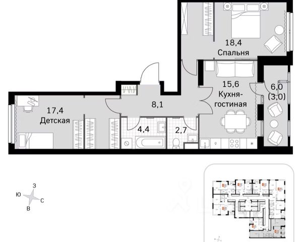 Уникальная планировка — просторная Г-образная гостиная 30,4 кв.м. с 3-мя панорамными арочными окнами, прекрасными видовыми характеристиками и балконом (где в тишине можно насладиться чашечкой кофе), а так же спальня 13,6 кв.м. с арочным окном выходят во двор на противоположную от Ленинградского проспекта сторону, окно кухни - 9,5 кв.м., выходит в торец дома. Большое открытое пространство вокруг дома и высокие потолки (с элементами лепнины) добавляют простора и света.