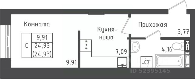 Продаётся студия в строящемся доме (Дом 1), срок сдачи: I-кв. 2026, общей площадью 24.93 кв.м., на 3 этаже. Квартал жилой застройки "Зеленый Оазис-Город"