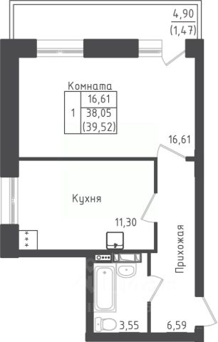 Продаётся 1-комнатная квартира в строящемся доме (Дом 1), срок сдачи: I-кв. 2026, общей площадью 39.52 кв.м., на 3 этаже. Квартал жилой застройки "Зеленый Оазис-Город"