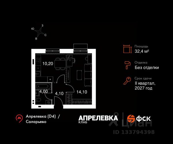 Прямая продажа от застройщика! Загородный жилой комплекс класса Комфорт Плюс. Продаётся 1-к квартира 103 общей площадью 28.1 кв.м на 5-м этаже 5 этажного дома. Без отделки. Расположение комплекса: "Апрелевка Клаб" это жилой комплекс всего в 30 км от Москвы по Киевскому шоссе, где городские удобства гармонично сочетаются с природой. Здесь начинается новая ступень жизни: современная малоэтажная застройка не нарушает живописные виды, а закрытая территория дарит чувство безопасности. Особенности проекта: - Улучшенная отделка МОПов - Социальная инфраструктура в шаговой доступности: муниципальные детский сад и школа, поликлиника - Не просто школа: школа МГИМО - Школа искусств МАРХИ - Всесезонное уникальное благоустройство: от города к природе через призму искусства - Комфортное пространство (спорт, досуг с детьми, работа в удаленном формате с прекрасными видами, место для творчества, тихие места для уединения и размышления) - Отличная транспортная доступность Транспортная доступность: - Метро Филатов Луг и Рассказовка 25 км - МЦД Апрелевка 5 км - МКАД — 30 км - Садовое кольцо — 45 км - Метро в Троицке (открытие в 2030) — 22 км - Ближайшая остановка общ. транспорта "Фрунзевец" 550 м - Ст. м. "Саларьево" 30 мин. на автобусе Внутренняя инфраструктура: Здесь есть хобби на любой вкус, возраст и сезон. Велосипедные, беговые и прогулочные маршруты, уличный workout, летний амфитеатр, спортивная площадка, центральная площадь с сухим фонтаном и игровыми зонами. Крытые развлечения: зона коворкинга, детская комната, кафе. В жилом комплексе будет современная школа на 830 мест и детский сад на 400 мест нового формата: с просторными классами и современным оснащением согласно высоким стандартам. Также на территории будет размещена школа искусств. Дворы без машин, игровые зоны и маршруты для прогулок с навигацией минимизируют риски и создают ощущение защищенности. Вдоль южной границы комплекса протекает река Десна, создавая зону отдыха в природном окружении.
