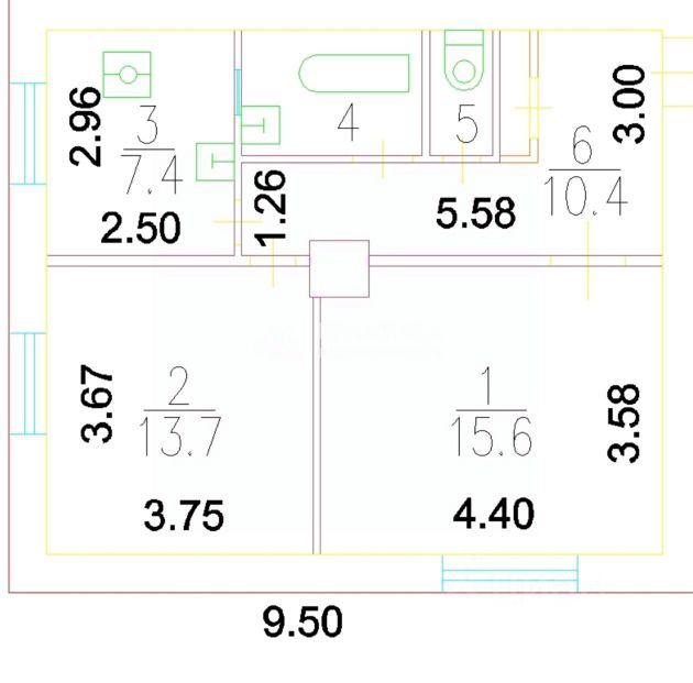 Большая комната предусматривает разделение на две зоны (гостинная и спальня), что уже предусмотрено расположением розеточных групп и люстр/бра.