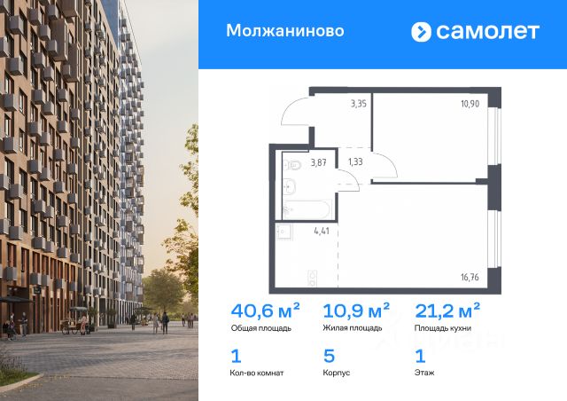 Строим кварталы для жизни с заботой о будущем. Предлагается 1-комнатная квартира комфорт-класса 43,67 кв.м в корпусе 4 на 2 этаже, в ЖК "Молжаниново" Квартира с предчистовой отделкой. Доступность дополнительных опций уточняйте у застройщика. Приобрести квартиру возможно по специальным акциям от застройщика, с текущими условиями акций можно ознакомиться в блоке "Акций". Цена динамическая и может отличаться, уточняйте актуальность у застройщика. Жилой комплекс "Молжаниново" — это место, где каждый маршрут продуман так, чтобы вы проводили больше времени с близкими, а не в дороге. Ставьте паруса в канале имени Москвы, устраивайте пикники в Химкинском лесу или ищите редких птиц в Захарьинской пойме. Жилой комплекс сочетает в себе комфорт городской жизни с преимуществами природы. С одной стороны — московская регистрация, собственная инфраструктура, благоустроенные дворы с детскими площадками и зонами отдыха. С другой — ручей и пруд прямо на территории, а также много леса вокруг.