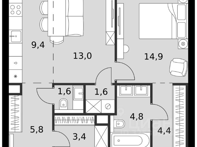 УСПЕЙ ПО СЕМЕЙНОЙ ИПОТЕКЕ! Премиум со скидками до 35%! Прямая продажа от застройщика! Жилой Комплекс премиум-класса. Продаётся 2-к квартира номер 11 общей площадью 47.3 кв.м. на 2-м этаже 46 этажного здания. Отделка Whitebox. Цена с учётом скидки. Особенности квартиры: - Мастер-зона с гардеробной. Просторное место для отдыха и удобного хранения вещей. - Просторная спальня, в которой можно разместить большую кровать. - Линейная планировка - максимальная функциональность и удобство. - Увеличенная ширина окна/окон - больше света и визуального простора. - Евроформат - просторное и удобное жилье с отличной планировкой. - Гибкая планировка - создайте пространство по своему вкусу. - Место для игры/занятия спортом - идеальное пространство для активных детей. - Возможность добавить спальное место - дополнительный комфорт для гостей. - Гардеробная - удобство для хранения и организации вещей. - Ниша под шкаф - компактное и удобное место для вещей. Квартира с предчистовой отделкой (White box). Вам не придется заниматься черновыми и трудоёмкими работы, а чистовую отделку и дизайн - сделайте на свой вкус. Информация о комплексе: Amber City - это не просто квартал. Это место, куда ведут все маршруты, где рождается вдохновение работать и творить, где счастлива семья и жизнь кипит 24/7. Модная архитектура, высокотехнологичные решения и самодостаточная инфраструктура приближают Amber City к лучшим районам Гонконга и Нью-Йорка. Потрясающие виды на Москва-Сити и центр позволяют заряжаться их амбициозностью, не подчиняясь суете. Стремящиеся ввысь небоскребы, благоустроенный парк с зонами отдыха для взрослых и детей, а также многочисленные объекты инфраструктуры возводятся в западной части центра Москвы. Транспортная доступность: Квартал отличается исключительной транспортной доступностью: большая часть значимых мест Москвы находится на расстоянии 15-20 минут. Такое расположение позволит полностью погрузиться в деловую и культурную жизнь столицы и тратить на дорогу только необходимый минимум времени. Общественный транспорт: - Станция метро "Беговая" - 5 минут пешком - Станция "Беговая" (МЦД-1) - 5 минут пешком - Ж/д станция Беговая - 12 минут пешком - Остановка "2-й Хорошёвский проезд" - 3 минуты пешком - Станция метро "Звенигородская" (строящаяся) - 10 минут пешком На автомобиле: - Звенигородское шоссе - 3 минуты - TTK - 5 минут - Хорошёвское шоссе - 9 минут - Садовое кольцо - 12 минут - Красная Пресня - 15 минут - Тверская - 20 минут - Серебряный бор - 8 минут - Строгинский затон - 8 минут - Москва-Сити - 10 минут - Кремль - 20 минут - Аэропорт Шереметьево - 40 минут Внутренняя инфраструктура: Умелая работа над ландшафтом позволила правильно зонировать многоуровневое пространство, общей площадью 6 гектаров, открывая разнообразные возможности для резидентов Amber City и их детей. Главной артерией квартала станет собственный зеленый бульвар. Он начнется с площади у входа на территорию и, объединяя все внутренние