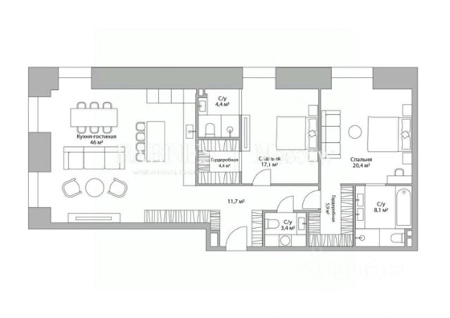 - 147 резиденций, площадью от 63 до 263 (с возможностью объединения)