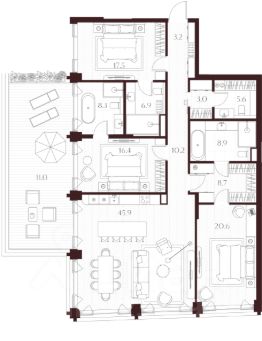 Продаются 4-комнатные апартаменты в сданном доме (Новый Арбат, 32), срок сдачи: IV-кв. 2013, общей площадью 415.8 кв.м., на 13 этаже. ЖК "Звёзды Арбата" воплощает в себе новую для рынка недвижимости идею сочетание гостиничного сервиса с жилыми апартаментами.