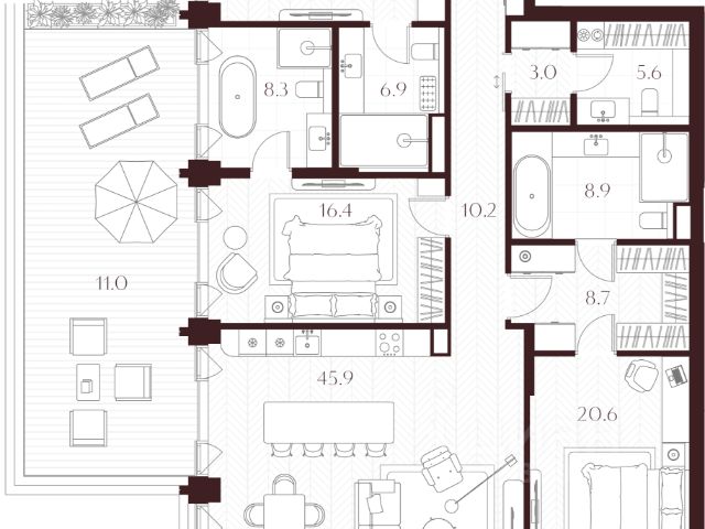 Отделка апартаментов выполнена в разных стилях: ретро, классика и модерн. Инженерные решения выполнены по последнему слову техники: окна оформлены стеклопакетами в рамах из натурального дерева, спроектирована приточно-вытяжная вентиляция, система кондиционирования и очистки воздуха, система фильтрации и очистки воды, сплинкерная система пожаротушения. В доме установлены быстрые и бесшумные лифты, на которых можно спуститься в отель и на подземный паркинг.