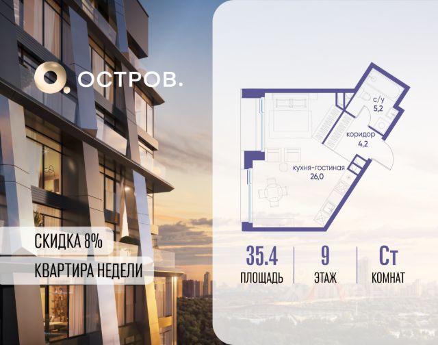 Скидка до 8% действует до 27.02.2026 г. при 100% оплате и не субсидированной ипотеке. Продаётся студия от застройщика: общая площадь 35.40 м², жилая 20.00 м², кухня 6.00 м², 9, жилой квартал "Остров 12", корпус 1 (12.1 квартал) (секция 1). срок сдачи: 4-кв. 2025. , 1 совмещенный санузел. В жилой зоне 2 больших окна на одну сторону, хорошая инсоляция. Позвоните сейчас и забронируйте квартиру! Купите квартиру для курортной жизни в Москве в квартале ОСТРОВ.12.1. Это единственный на ОСТРОВЕ квартал бизнес-класса, расположенный на первой линии у реки - здесь царит атмосфера ежедневного отпуска. Дома созданы в узнаваемом футуристичном стиле и выглядят как произведения современного искусства. Для жителей предусмотрены фитнес-рум и детский клуб, гостиная и кинотеатр, переговорные и репетиторские комнаты. На крышах устроены видовые общественные пространства с зонами для йоги, коворкингами, лаунжами. Двор-парк располагает всем необходимым для отдыха и общения всех возрастов. ОСТРОВ.12.1 - часть жилого комплекса на западе Москвы, в 15 минутах езды от центра. Это настоящий заповедник посреди большого города, в окружении реки и 650 га заповедников. Здесь все необходимое находится по соседству: от детского сада до супермаркета, от фитнес-зала до серфинг-центра. На территории созданы все условия для отдыха и общения: клубная инфраструктура в домах и дворы-парки, набережные и променады, маршруты для спортсменов, детей и возрастных жителей. В нескольких минутах ходьбы расположена станция метро "Мнёвники" БКЛ. На автомобиле - 10 минут до Москва-Сити и 15 минут до Садового кольца.