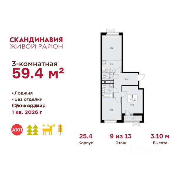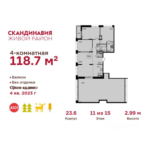 В жилом комплексе, расположенном по соседству с ландшафтным парком "Южное Бутово", продается 2-комнатная квартира площадью 53.30 кв. м. с отделкой. Квартира расположена на 18 этаже 2 корпуса в жилом квартале комфорт-класса "Новые Смыслы" (ГК Unikey/Юникей). Доступная и удобная локация: - 10 минут ходьбы до станции метро "Потапово". - 25 минут ходьбы до станции метро "Бунинская аллея". - 15 минут на авто до Калужского шоссе. - 20 минут на авто до МКАД. - 30 минут на машине до аэропортов "Внуково" и "Остафьево". Продуманный архитектурный проект: - Разноуровневые секции с эстетичные башнями и контрастными цветовыми сочетаниями, напоминающими башни в Сити. - Сказочные виды из окон на современный район столицы. - Авторские планировки с потолками в 3 метра, просторными кухнями-гостиными и мастер-спальнями. - Комфортные бесплатные общественные пространства. - Подземный паркинг с прямым доступом на лифте. - Настоящий лес с живописными пейзажами и прудом прямо во дворе. Расположение Комплекс "Новые Смыслы" расположится в благоприятном районе Новой Москвы - Коммунарка. Зеленое окружение, богатая инфраструктура развивающегося района - все это сформирует особое пространство для комфортной жизни, наполненной смыслом. 10 минут на велосипеде - и вы в ландшафтном парке "Южное Бутово" или сквере у Потаповских прудов. Чуть дальше расположен Бутовский лесопарк. В окружении "Новых Смыслов" вы найдете все необходимые социальные объекты. В двух шагах от дома находится 5 школ, более десятка детских садов, секции для занятий малышей и подростков, частные клиники, супермаркеты, рестораны, студии красоты и фитнес-центры. За 12 минут на авто вы доберетесь до ледовой арены, комплекса "Спорт Станция" и спа-центра "Termoland". Внутренняя инфраструктура Для жителей "Новых Смыслов" будут созданы бесплатные общественные пространства: - Деловая гостиная с эстетичным коворкингом и переговорными. - Гостиная для души и тела, включающая фитнес-зону с тренажерами и пространства для стретчинга, йоги и медитаций. - Гостиная детства, где дети будут играть и развиваться под присмотром тьютора. - Кино-гостиная - кинотеатр на крыше одного из домов, предлагающий разнообразную программу. - Прачечная, работающая только для жильцов. Вместе с корпусами комплекса на территории запланировано строительство детского сада. На первых этажах корпусов откроются кофейни, пекарни, сервисы быта и пункты доставки. Благоустройство Чтобы отдохнуть от суеты города, достаточно выйти во двор: здесь раскинулся настоящий лес с живописными пейзажами. В тени деревьев жителей ждут пруд с мостиком и беседкой на берегу, тихие прогулочные аллеи, спортивная площадка и зоны для занятий йогой и бадминтоном на свежем воздухе. Юных жителей порадуют современные детские площадки, жукарий и специальное пространство для подвижных игр. Безопасность на территории гарантирована: двор огорожен от машин и оснащен камерами видеонаблюдения.