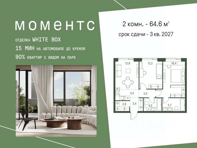 В продаже 4-комнатная квартира в готовом клубном доме бизнес-класса "Интонация". Квартира с высокими потолками с мастер-спальней, просторной кухней и постирочной. Условия покупки: - семейная ипотека - рассрочка на 6 месяцев - Trade-in "Интонация" состоит из двух 21-этажных корпусов и приватной внутренней территории. На стилобате расположен ландшафтный сад с авторским благоустройством. В продаже финальный пул квартир бизнес-класса с мастер-спальнями, возможностью установки камина, окнами в ванных комнатах, увеличенной высотой потолков, а также просторными террасами и лоджиями. "Интонация" расположена в экологичном районе Щукино на северо-западе Москвы. Вокруг Щукинский лесопарк, Всехсвятская роща и парк "Покровское-Стрешнево". Одно из главных преимуществ дома - сочетание близости к природе и развитой инфраструктуры: - до метро "Щукинская" - 10 минут пешком - до центра - 10 минут на автомобиле Рядом детские сады и школы, включая знаменитую Курчатовскую. Недалеко расположены корпуса Финансового университета и других ведущих вузов. В пешей доступности - поликлиники, супермаркеты, фитнес-центры и спортивные секции. Собственная инфраструктура "Интонации" - ресторан итальянской кухни, студия фитнеса и пилатеса, супермаркеты, один из которых круглосуточный, салон красоты, барбершоп и химчистка. Приватная территория "Интонации" разделена на две тематические зоны: внутренний двор с детскими и спортивными площадками и ландшафтный сад на террасе. Главным акцентом стал парящий водоем с подвижной гладью. Двухуровневый паркинг рассчитан на 186 автомобилей и 27 гостевых мест. Есть возможность зарядки электромобилей, удобный подъезд для грузового транспорта, келлеры для хранения личных вещей и помещение для велосипедов.