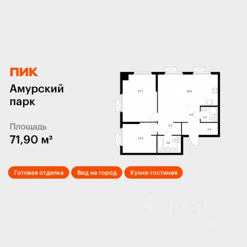 Продаётся 2-комн. квартира площадью 52,5 кв.м на 11 этаже 27 этажного дома (Корпус 4.5, Секция 6) проекта ПИК Амурский парк. Светлый просторный подъезд на уровне земли, функциональная планировка, большие окна, c отделкой. "Амурский парк" — проект "Серии плюс" на востоке Москвы, в 10 минутах пешком от станций метро "Черкизовская" и МЦК "Локомотив". В квартале будет всё для комфортной жизни: квартиры с готовой отделкой и видом на Измайловский парк, уютные дизайнерские лобби, подземный паркинг, торговые галереи на первых этажах и свой детский сад с бассейном. Всего в 8 минутах пешком от квартала "Амурский парк" находится уютный Сиреневый сад, а в 20 минутах — Детский Черкизовский Парк, за 10 минут можно доехать на машине до парка "Лосиный Остров". Квартал от мастерской M.A.M. отражает уникальный архитектурный почерк и органично дополняет городской ландшафт. В основе концепции — принцип сомасштабности человеку, благодаря чему внутри проекта формируется комфортное и гармоничное пространство для жизни. Квартал представлен разновысотными корпусами в минималистичном стиле. Образ строится на сочетании мягких пластичных линий и строгих геометрических форм. Рельефные детали в виде вертикальных металлических ламелей добавляют зданиям объём и глубину, делая архитектуру более выразительной. Цветовая гамма фасадов построена на контрасте терракотового и молочно-серого оттенков, которые создают атмосферу тепла и уюта. Магазины, рестораны и полезные сервисы на первых этажах создадут комфортное пространство для покупок, прогулок и встреч за чашкой кофе. Артикул 1021055 (Застройщик АО "СПЕЦИАЛИЗИРОВАННЫЙ ЗАСТРОЙЩИК "ГЛОРИ"")