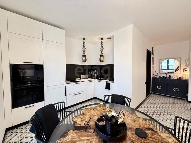 Организация пространства: большая кухня-гостиная (36 кв.м.), установлена красивая и вместительная мебель с большими удобными полками, есть два встроенных холодильника "Neff", микроволновка, духовой шкаф, большая посудомойка и варочная панель "Bosch", вытяжка, настроение добавляет прекрасный винный шкаф "Libhof". В гостиной с красивыми люстрами есть биокамин, уютнейший диван, который не хочется покидать, журнальный столик и обеденный стол со стульями. А какой у нас просторный балкон (2,5 х 2,5 м.!), где, при желании, можно организовать и кабинет, и игровую, и зону для спорта. Спальня с большой кроватью и гардеробной комнатой. Вторая комната спальня-кабинет. Два с/у. В большом с/у ванна, унитаз, большие раковина с тумбочкой и полотенцесушитель (водяной). В гостевой с/у унитаз и стиральная машинка. Сантехника Roca и Jacob Delafon.