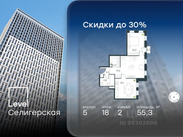Цена указана с учётом скидки при 100%-й оплате, несубсидированной ипотеке, рассрочке (кроме программы "Рассрочка 0%"). В жилом квартале, расположенном в южной части района Западное Дегунино, продаётся 2-комнатная квартира площадью 62.50 кв.м без отделки. Квартира расположена на 7 этаже 40-этажного корпуса 5 в жилом комплексе комфорт-класса Level Селигерская (компания Level Group/Левел групп). Отличная транспортная доступность: - 10 мин. пешком до станции метро "Верхние Лихоборы"; - 15 мин. пешком до станции метро "Селигерская"; - 20 мин. пешком до станции МЦД-3 "Моссельмаш"; - 11 мин. на авто до МКАД; - 13 мин. на авто до ТТК; - 16 мин. на авто до Садового кольца. Расположение Район отличается богатой социальной инфраструктурой: школы, детские сады, поликлиники, магазины, фитнес-клубы, торговые центры - всё близко к дому. Рядом с Level Селигерская расположено 5 парковых зон. В 3 минутах от дома расположен перспективный сквер-парк. В 10 минутах пешком находится парк им. Святослава Фёдорова, в 13 минутах на велосипеде - парк "Ангарские пруды". В 7-11 минутах на автомобиле - два крупных природных объекта: Тимирязевский парк и Главный ботанический сад Российской академии наук. Благоустройство Внутренние дворы жилого комплекса огорожены от машин, а их функциональное наполнение отличается в зависимости от очереди строительства. На территории 2-й очереди жителей ждут уютные навесы с качелями, павильон-читальня, волейбольная площадка, беседки, а также детские и спортивные площадки. Технологии и инженерия Для входа на территорию комплекса предусмотрен единый ключ доступа. Все общественные зоны оснащены камерами видеонаблюдения, по заявке собственнику предоставляется возможность просмотра изображения отдельных видеокамер на его мобильном устройстве. При въезде в паркинг функционирует система распознавания госномеров. Кроме того, для комфорта жителей создано мобильное приложение, с помощью которого можно удаленно контролировать доступ на придомовую и жилую территории. Другие преимущества жилого комплекса - Высокая освещённость квартир: в большинстве из них не менее трёх окон; - Супермаркет, магазины, кафе, пекарни и многое другое на первых этажах домов; - Частный детский сад; - Стильные дизайнерские лобби с высокими потолками до 4,3 м. и окнами в пол, для питомцев предусмотрена лапомойка; - 30+ планировочных решений: от компактных студий до просторных семейных квартир; - С каждого этажа дома на лифте можно спуститься в подземный отапливаемый паркинг."