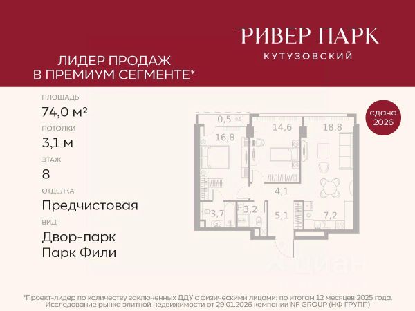 Продается студия площадью 41.2 кв.м. на 12-м этаже в жилом комплексе премиум-класса Ривер Парк Кутузовский в Башне Янтарь Премиальный жилой комплекс Ривер Парк Кутузовский строится в одном из самых престижных районов столицы Дорогомилово, на берегу Москвы-реки с лучшими видами на Москва-Сити. Яркий проект в стиле эко-футуризма станет самым масштабным и самым высотным ЖК в локации Кутузовского проспекта. Расположение и Транспортная доступность: • На берегу Москвы-реки, напротив Москва-Сити • 600 метров до Кутузовского проспекта • Удобный съезд с ТТК • Прямой выезд на МКАД по Проспекту Багратиона. • В пешей доступности 3 станции метро: Фили, Парк Победы, Кутузовская, а также станция МЦД Фили. Архитектура от именитого бюро ADM отличается уникальной пластикой фасадов - башни словно парят в воздухе, играя гранями как драгоценные камни. Жилой комплекс состоит из 5-ти небоскребов с приватным парком 2 Га и внешней торговой галереей с открытым доступом. В закрытом внутреннем дворе уникальная по насыщенности клубная инфраструктура только для жителей: • Площадка Мультиспорт (баскетбол, футбол, воллейбол, большой теннис) • Детский игровой клуб Немо • Музыкальная студия • Клуб Гедонист с бильярдной • Студия стиля для стилистов и массажа • Гольф-симулятор • Караоке Впервые в Москве лаунж-зоны на крыше небоскребов, только для жителей: • Всесезонные беседки иглу • Джакузи • Гриль • Площадка для занятий йогой • Самые высоки качели на крыше в России • Видовые площадки Благоустройство комплекса занимает 3 гектара и разработано мировым экспертом по городским парковым ландшафтам - голландским бюро WEST8. Концепция проекта дать жителям отдохнуть от городского ритма и расслабиться среди природы. В Приватном парке уже высажены хвойные деревья-крупномеры сосны и ели. • Зеркальный пруд с арт-объектом • Две детские площадки • Точка спорта с тренажерами и турниками • Цветущий сад • Зеленый театр со сценой и проектором • Видовая зона отдыха с очагом • Солнечная терраса с лежаками На территории жилого комплекса планируется строительство коммерческого образовательного центра, включающего детский сад на 200 мест и школу на 460 мест.