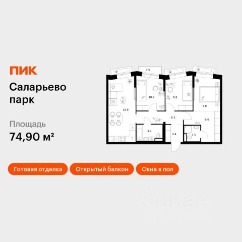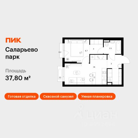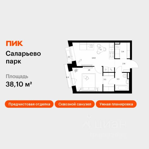Продаётся 1-комн. квартира площадью 38,1 кв.м на 9 этаже 18 этажного дома (Корпус 74.2, Секция 2) проекта ПИК Саларьево парк. Светлый просторный подъезд на уровне земли, функциональная планировка, большие окна, предчистовая отделка. Жилой район "Саларьево парк" расположен в Новой Москве, в четырёх километрах от МКАД по Киевскому шоссе. Две станции метро: "Саларьево" и "Филатов луг", — находятся в пешей доступности от проекта. Дойти до них можно за 510 минут. В квартале уже создана качественная среда, где есть абсолютно всё для полноценной жизни, работы и отдыха. Благодаря удобному расположению проекта всё важное будет рядом: детские сады, школы, кафе и рестораны, шопинг в торговых центрах, фитнес и даже аэропорт. Все корпуса в квартале гармонично сочетаются, образуя единую городскую среду. Между собой их объединяет невысокая этажность и натуральная цветовая гамма. Здесь приятно гулять и проводить время на улице всей семьёй. В "Саларьево парке" создана уникальная образовательная среда, включающая в себя шесть школ, рассчитанных на 6 250 учеников. Две из них уже открыты, их посещает 2 300 детей. Также на территории "Саларьево парка" находится 12 детских садов, один из которых с бассейном. Сейчас уже открыты 7 садов. В "Саларьево парке" открыта уникальная игровая площадка — PlayHub "Оригами". Здесь есть ручей, горка-труба и рельефные холмы. Взрослые смогут отдохнуть в уютном кафе, пока дети играют. Также на территории проекта есть SportHub — большая спортивная зона, разделённая по интересам и возрастам. Здесь можно заниматься разными видами спорта: футболом, баскетболом, волейболом и стритболом. Зимой центральную часть площадки превращают в каток. Во дворах-парках жилого квартала есть места для отдыха, детские и спортивные площадки. На первых этажах домов расположены магазины, кафе и полезные сервисы. Также вблизи проекта есть несколько масштабных торговых центров. До ТЦ "Саларис" пять минут пешком, до "Рио", Metro Cash & Carry и "Леруа Мерлен" — пять минут на автомобиле. Артикул 1006368 (Застройщик ООО "Специализированный Застройщик "Тирон") Купить квартиру с балконом рядом с метро Прокшино.