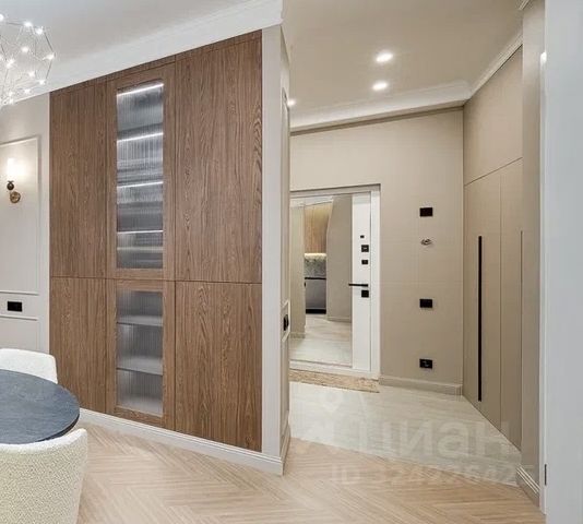 Общая площадь — 57,8 кв. м, жилая — 45 кв. м, кухня — 10 кв. м.