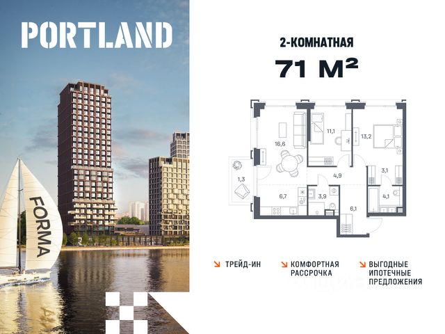 Цены указаны с условием 100% оплаты и стандартной ипотеки. Продаётся 2-к. квартира, 5 этаж в жилом комплексе бизнес-класса Portland от девелопера FORMA. ЖК расположен на берегу Москвы-реки в северной части района Печатники в акватории Южного речного порта. Основные преимущества проекта: • Самая протяженная береговая линия реки в Москве 13 км. • Вид на реку в сторону запада панорамные окна на самое широкое водное пространство Москва-реки (900 м) и на закат. • 95% квартир с видом на воду. • К Portland не примыкает крупных автомагистралей - отсутствие фонового шума дорог. • В перспективе ближайших 11 лет на территории района запланировано грандиозное преобразование и комплексное развитие. • Собственная набережная длиной 412 м., которая после завершения строительства сомкнется с эко-парком Печатники. • Прямой выход к воде и отсутствие проезжей части между Portland и береговой линией. • Инфраструктурное разнообразие: супермаркеты, крупные торговые центры, рестораны, кафе, фитнес-клубы, бьюти-салоны, компании сферы услуг и многое другое. • Собственная школа на 300 мест и детский сад на 275 мест. • Паркинг на 650 м/м • Транспортная вседоступность: метро, авто, велосипед, речной трамвай, канатная дорога • 15 мин. пешком до м. Печатники, 15 мин. на авто до ТТК, 20 минут на авто до Садового кольца Продам квартиру с балконом в районе Печатники в Москве.