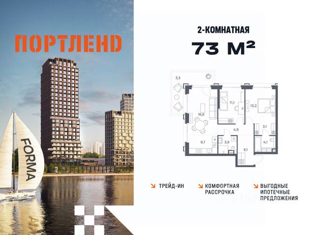 Цены указаны с условием 100% оплаты и стандартной ипотеки. Продаётся 4-к. квартира, 3 этаж в жилом комплексе бизнес-класса ПОРТЛЕНД от девелопера FORMA. ЖК расположен на берегу Москвы-реки в северной части района Печатники в акватории Южного речного порта. Основные преимущества проекта: • Самая протяженная береговая линия реки в Москве 13 км. • Вид на реку в сторону запада панорамные окна на самое широкое водное пространство Москва-реки (900 м) и на закат. • 95% квартир с видом на воду. • К ПОРТЛЕНД не примыкает крупных автомагистралей - отсутствие фонового шума дорог. • В перспективе ближайших 11 лет на территории района запланировано грандиозное преобразование и комплексное развитие. • Собственная набережная длиной 412 м., которая после завершения строительства сомкнется с эко-парком Печатники. • Прямой выход к воде и отсутствие проезжей части между ПОРТЛЕНД и береговой линией. • Инфраструктурное разнообразие: супермаркеты, крупные торговые центры, рестораны, кафе, фитнес-клубы, бьюти-салоны, компании сферы услуг и многое другое. • Собственная школа на 300 мест и детский сад на 275 мест. • Паркинг на 650 м/м • Транспортная вседоступность: метро, авто, велосипед, речной трамвай, канатная дорога • 15 мин. пешком до м. Печатники, 15 мин. на авто до ТТК, 20 минут на авто до Садового кольца Продам квартиру с балконом в районе Печатники в Москве.