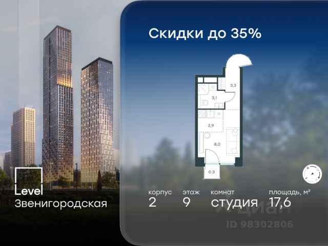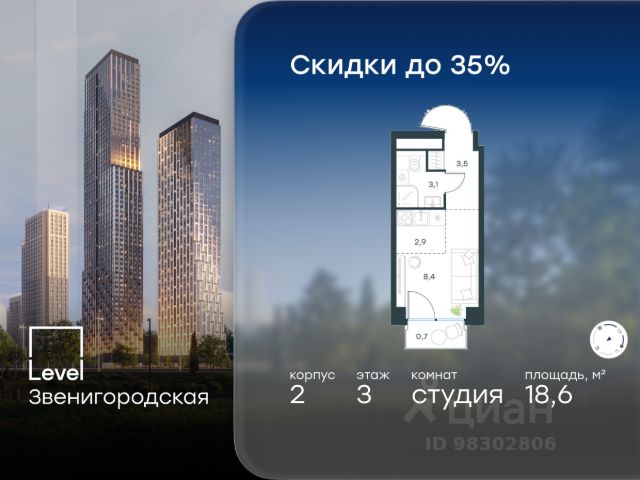 Цена указана с учётом скидки при 100%-й оплате, несубсидированной ипотеке, рассрочке (кроме программы "Рассрочка 0%"). В жилом квартале продаётся 3-комнатная квартира площадью 72.20 кв.м без отделки. Квартира расположена на 21 этаже 64 этажного корпуса 2 в жилом комплексе комфорт класса Level Звенигородская (компания Level Group/Левел групп). Отличная транспортная доступность - 5 мин. пешком до метро "Звенигородская" (откроется к окончанию строительства); - 18 мин. пешком до станции МЦК "Хорошёво" и станции БКЛ "Народное ополчение"; - 4 мин. на авто до ТТК; - 8 мин. на авто до Садового кольца; - 15 мин. на авто до Кремля. Продуманный архитектурный проект - Концепция от студии Станислава Михаловского, в основу которой легло единение природы и города; - Двухкамерные стеклопакеты в окнах, алюминиевый и ПВХ профиль - в квартирах тепло зимой и прохладно летом; - С верхних этажей откроются панорамные виды на город, Москву-реку, "Москва-Сити" и Москворецкий парк; - Лобби со всеми удобствами: окна в пол, высокие потолки до 4,7 м, лаунж-зоны, колясочные, гостевые санузлы и мойки для лап животных; - Централизованные водонагреватели гарантируют круглогодичную подачу горячей воды в каждую квартиру. Благоустройство Концепция благоустройства разработана совместно с бюро UNK landscape. Высота башен приближается к 200 метрам - они словно касаются неба. Небесный простор проецируется на территорию двора с помощью подсветки, визуально увеличивая пространство и отражаясь в авторских элементах архитектуры. На территории площадью 0,45 га расположатся: - "Облако событий" - место встреч и общения; - "Облако спорта" - всё для поддержания себя в форме; - "Облако принятия решений" - пространство для работы на свежем воздухе; - "Облако спокойствия" - для отдыха в тишине природы; - "Облако игр" - площадки для подростков и самых маленьких. Инфраструктура В жилом комплексе откроется 21 коммерческое помещение: продуктовые лавки, кафе, салоны красоты, службы доставки и творческие студии. Этап 1 включает строительство двухуровневого подземного паркинга. Всего здесь расположится 351 машино-место, включая семейные места, и 264 кладовых помещения. В распоряжении жителей развитая инфраструктура района: 15 супермаркетов, 5 спортивных объектов, 9 медучреждений, 7 детских садов, 4 школы, 3 благоустроенных парка - всё в шаговой доступности. Инженерия Комфортное перемещение внутри домов будут обеспечивать надёжные лифты с доступом в паркинг с жилых этажей. В каждом корпусе предусмотрено до шести кабин, включая сервисные лифты. Попасть на территорию комплекса можно только по единому ключу доступа. Видеонаблюдение установлено на входах в подъезды, в лобби, в общих зонах, на въезде в паркинг. Гости смогут связаться с жителями дома через входные видеопанели, а управлять доступом на территорию можно через видеодомофон или приложение на телефоне. Продается квартира с балконом станция Хорошево (МЦК).