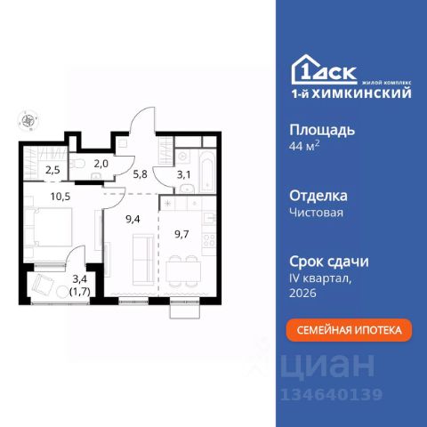 Прямая продажа от застройщика! Жилой Комплекс класса Комфорт. Продаётся 2-к квартира номер 416 общей площадью 44.7 кв.м. на 6-м этаже 7 этажного здания. Чистовая отделка. Особенности квартиры: - Организуем показ в удобное для вас время! - Мастер-зона с гардеробной. Просторное место для отдыха и удобного хранения вещей. - Просторная спальня, в которой можно разместить большую кровать. - Линейная планировка - максимальная функциональность и удобство. - Раздельный санузел - больше удобства для всех членов семьи. - Евроформат - просторное и удобное жилье с отличной планировкой. - Гардеробная - удобство для хранения и организации вещей. - Ниша под шкаф - компактное и удобное место для вещей. - Лоджия - уютное место для отдыха и тишины. Квартира с чистовой отделкой. Раскройте свою индивидуальность в создании своего уникального проекта, а трудоемкий ремонт мы возьмем на себя! Вы идете в ногу со временем и предпочитаете современные, универсальные дизайнерские решения? Или вы любитель строгой лаконичной классики? Тогда наши интерьеры придутся вам по душе! Выбирайте то, что ближе лично Вам и реализуйте свои задумки вместе с нами! Информация о комплексе: "1-й Химкинский": гармония современного города и природы на 102 га у Химкинского леса и канала им. Москвы. Развитая инфраструктура: ТЦ, школы, спорткомплекс с термами и СПА, парк развлечений. Идеальный баланс для жизни в окружении зелени и городского комфорта. Транспортная доступность: ЖК "1-й Химкинский" дает возможность выбрать любой способ передвижения как до города, так и до самых разных объектов, которые могут представлять интерес для его жителей. Не важно, какой способ передвижения вы предпочитаете, успевать всегда и везде можно вне зависимости от выбора транспорта. - 8 мин. пешком (800 м) до остановки "Золотая Арка" -10 мин пешком (1 км) до остановки "Поворот на Ивакино" Внутренняя инфраструктура: Безопасность: закрытые дворы без машин, безбарьерная среда, сквозные подъезды, камеры на детских площадках с трансляцией на смартфон. Отдых: семейный парк развлечений, двухэтажный ТЦ 8 000 м² с фудкортом. Образование: 4 детских сада, 2 муниципальные школы. Спорт: закольцованный веломаршрут, спорткомплекс с термами, тренажерный зал, воркаут зоны. Инфраструктура: поликлиника со станцией скорой помощи, пожарное депо. Паркинг: подземный паркинг, кладовые на -1 этаже, СТО и автомойка на территории. Квартира с чистовой отделкой: ваш стиль без ремонта. Выбирайте современный дизайн или классику - мы воплотим ваши идеи. Готовые интерьеры для уникального дома.