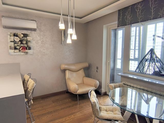 В квартире продуман каждый сантиметр: без узких мест и мертвых зон, понятная эргономика и достаточный объем воздуха. В отделке природные фактуры и чистота пространства: натуральное дерево, итальянская плитка, трёхслойная штукатурка, скрытые системы хранения и обогрева, интегрированная премиальная техника. Многоуровневый свет во всех помещениях (общий, акцентный, контурный) интерьер одинаково хорошо выглядит и днём, и вечером.
