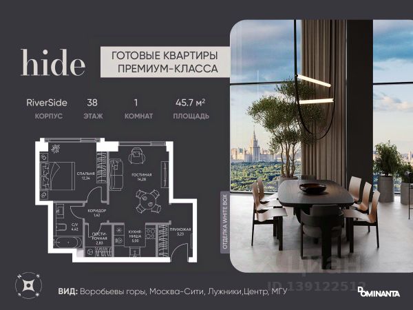 Добрый день! Меня зовут Всеволод. Продается элегантная евро-двухкомнатная квартира с видом на Москву-Сити в премиальном ЖК Hide