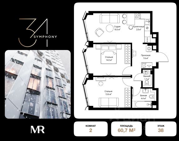 Дом сдан. Ключи в день покупки! В продаже 2-комнатная квартира площадью 59.40 м² с предчистовой отделкой на 35 этаже 43 этажного дома в корпусе Сильвер. ЖК Симфония 34 - концептуально новый жилой комплекс премиум-класса с подземной парковкой, состоит из четырех башен высотой 36 - 54 этажа. Квартиры сдаются с базовой (предчистовой) отделкой MR BASE или дизайнерской чистовой отделкой MR READY. Высота потолков 3 - 6 метров, окна высотой до 2,6 м. Более 100 кладовых в подземной части ЖК и более 500 на этажах. Безопасность - Система контроля входа на территорию комплекса, биометрия - Система автоматического водяного пожаротушения и противопожарного водопровода, система пожарной вентиляции - Доступ на парковку при помощи системы распознавания автомобильных номеров, карточка для контроля доступа резидентов - Система видеонаблюдения - Круглосуточная связь через приложение, телефон, голосовые сообщения с охраной, консьержем, call-центр. Расположение Пешком - 6 минут до метро "Дмитровская" - 15 минут до Тимирязевского парка На машине - 5 минут до Савеловского вокзала и Аэроэкспресса в Шереметьево - 10 минут до Москва-Сити и Садового кольца Благоустройство - 70% территории отведены под зеленые насаждения и ландшафтный дизайн - Приватный Японский сад - Детские площадки с зонированием по возрасту - Clubhouse для резидентов - Wellness & SPA - Зона для пикника, зона с гамаками - Центральное лобби, ресторан, коммерческие помещения - Дополнительный вход/выход на территорию комплекса Окружение - В 10 минутах от Symphony 34 находится дизайн-завод Flacon, где регулярно проходят культурно-образовательные и развлекательные мероприятия - Тимирязевский парк расположен в 850 м. Площадь парка 232 га - Рядом расположен парк "Дубки", площадью 16,5 га. - В 15 минутах расположен Хлебозавод 9. Здесь находятся шоурумы брендов, кафе разных кухонь мира, образовательные проекты и площадки для мероприятиКомпания MR предлагает своим клиентам специальные условия приобретения квартир в рамках программ ипотечного кредитования от банков-партнеров.