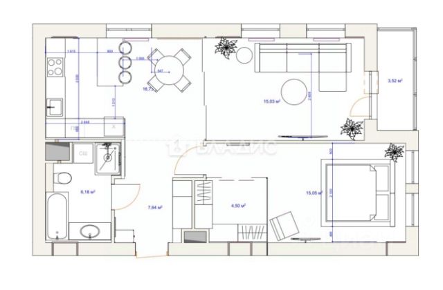 имеется оборудованная гардеробная 6,75 кв. м. Установлена система теплых полов в санузлах и на кухне, экологически чистые стеклопакеты "SHUCO", новая входная дверь с надежными замками, проведен интернет, кабельное ТВ.