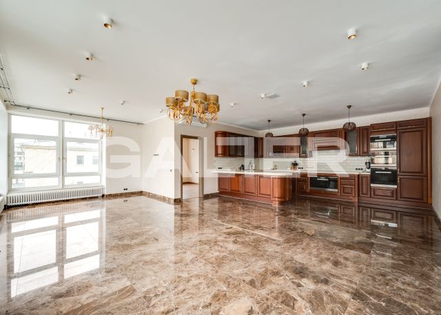 id:1994. Эксклюзивная квартира в стиле Русского Модерна. Мы рады представить вам великолепную квартиру площадью 274,5 м, оформленную в утонченном стиле Русского Модерна. Этот исключительный объект гармонично сочетает элегантность и комфорт. Основные характеристики: Площадь: 274,5 м - идеальное пространство для комфортной жизни большой семьи. Стиль интерьера: Русский Модерн, который внедряет союз традиций и современности. Виды из окон: Тихий переулок, Храм Христа Спасителя, МИД и Москва-Сити. Планировка: Большая гостиная: Простор для приветствия гостей и семейных вечеров. Просторная кухня: Оснащена техникой премиум-класса от Miele, создающей идеальную атмосферу для кулинарного искусства. Гостевой санузел: Удобство для ваших гостей. Кабинет: Уединенное пространство для работы или релаксации. Большая спальня с санузлом и гардеробной: Ваш личный уголок комфорта. Дополнительная спальня с санузлом: Отличное решение для размещения членов семьи или гостей. Прачечная: Практичное помещение для поддержания порядка дома. Лоджия: Оборудована панорамным остеклением, открывающим прекрасный вид на Москву. Лоджия отделана высококачественными материалами, которые гармонируют с общим стилем квартиры. Отделка и материалы: Полы: Паркет из карельской березы, придающий интерьеру теплоту и элегантность. Входная группа: Наборный мрамор с инкрустациями, подчеркивающий статус владельца. Двери: Межкомнатные двери выполнены с тщательным вниманием к деталям. Камин: Ручной работы, добавляющий аристократический акцент в атмосферу. Санузлы: Мраморные поверхности из Италии с подсветкой, создающие эффект простора и чистоты. Техника и декор: Современная техника Miele, зеркала и люстры из муранского стекла (Италия), стильная мебель от Zinaboni (Италия). В наличии имеются два машиноместа. Документы в порядке. Оперативный показ доступен.