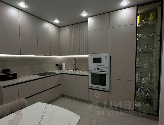 Большая комната - 22,9 кв.м., вторая комната 14,1 кв.м., кухня 15,7 кв.м., кухня совмещена с балконом и сделана барная стойка, коридор 12.4 кв.м., гардеробная 4.6 кв.м., санузел с ванной 4.5 кв.м., второй санузел 1,4 кв.м., лоджия 4,35 кв.м., французский балкон 1 кв.м. В квартире уже 5 лет проживает одна семья.