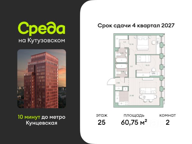 О квартире Продаётся однокомнатная квартира общей площадью 35.26 кв. м. с отделкой на выбор: черновая, White Box. Квартира на 2 этаже корпуса 5 в жилом комплексе бизнес-класса "Среда на Кутузовском". До метро "Кунцевская" 10 минут пешком. Исторический зелёный район "Среда на Кутузовском" строится в Кунцево - историческом и экологически чистом районе Москвы. Здесь нет крупных производств, много лесных массивов и роза ветров, которая обеспечивает приток чистого воздуха. Район наполнен жизнью и уже развит: много детских садов и школ, поликлиники, магазины, кафе, спортивные объекты, парки. - 10 минут пешком до станции метро "Кунцевская". - 5-8 минут на машине до Кутузовского проспекта и Можайского шоссе и 10-15 минут до Рублёвского и МКАД. - 15 минут езды до Крылатских холмов, Суворовского парка и заказника "Долина реки Сетунь". Акции и спецпредложения - Выгода 12%: если внести 100% оплату или оформить семейную ипотеку под 6%. Действует до 13 апреля. - Низкие ставки по ипотеке: 0,1% в первый год или 0,11% в первые два года кредита. - Трейд-ин от "Среды": можно обменять свою текущую квартиру на новую. - Ипотека для семей с детьми: если ребёнку до 7 лет, предлагаем льготную ставку 3,5% О жилом комплексе "Среда на Кутузовском" - новый квартал с башнями от 12 до 44 этажей, окружённый лесными массивами и историческими усадьбами старой Москвы. Во внутреннем дворе есть водоём, многоуровневые зоны с детскими и спортивными площадками, коворкинг на свежем воздухе и локации для уединённого отдыха. Особенности - Архитектура с многослойными фасадами. - Квартиры с террасами и мастер-спальнями. - Окна в пол на всех этажах. - Общественные лаунж-гостиные. - Собственный ландшафтный парк во дворе. - Зоны барбекю и площадки для отдыха у воды. - Умный подземный паркинг. - Стрит-ритейл на первых этажах.