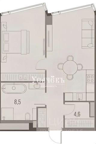 Большая и светлая кухня-гостиная с обеденной зоной, которую можно оборудовать по своим запросам для будущих теплых вечеров с родными.