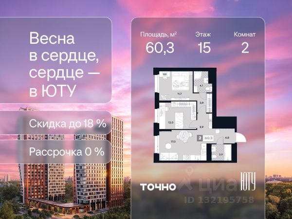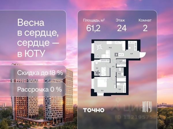 Скидка до 18% в апреле на выделенный пул лотов! ЮТУ — камерный проект бизнес-класса с исключительной архитектурой, видовыми квартирами и подходом к большой благоустроенной набережной канала имени Москвы. Проект создает идеальный баланс жизни в городе. Это приватный оазис, где в любой момент можно сменить обстановку и выбрать любой из тысячи маршрутов к активному отдыху и ярким впечатлениям. Удачное месторасположение: • Первая линия в прибрежной части Химкинского водохранилища • Исключительно тихий и зелёный район Южное Тушино • За 2 минуты можно спуститься к воде, за 10 минут найти зеленые парки и готовую инфраструктуру, за 30 минут доехать до Кремля Концепция проекта: • Две футуристичные башни, соединенные торговой галереей от бюро ATRIUM • 60 неповторяющихся планировок: квартиры с угловым панорамным остеклением, мастер-спальнями и гостиными до 39м², а также просторные квартиры площадью до 128,6 м² Чувство эксклюзивности: • Своя приватная жилая экосистема только для резидентов домов • Лаунж-терраса на крыше • В проекте предусмотрен закрытый двор-парк. Прогрессивные технологии: • 3-х уровневая система безопасности (Face ID, BLE-метки, видеонаблюдение) • Умный паркинг с распознаванием номеров Проект федерального девелопера ТОЧНО, который входит в ТОП-5 девелоперов России по объемам строительства.