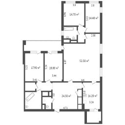Спланированы просторная кухня-гостиная с 4 окнами на 2 стороны света, хозяйская спальня со своей гардеробной комнатой, детская спальня с гардеробной, кабинет/гостевая спальня, 2 больших ванные комнаты, постирочно-гладильная, также есть лоджия с панорамным остеклением. Высота дверей - 2,50 метра. За дополнительную цену к квартире можно купить большое и удобное м/место в подземном паркинге, ширина места 2,85 метра.