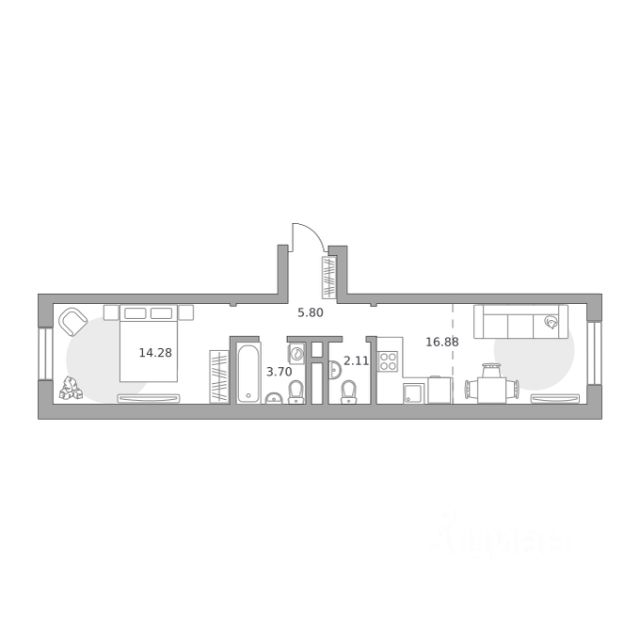 Продаётся студия 128, площадью 28,59 м², на 2 этаже в ЖК "Живописный" корпус 2.2. Стоимость — от 7282823 руб. Квартира с отделкой, планировка односторонняя, окна во двор.