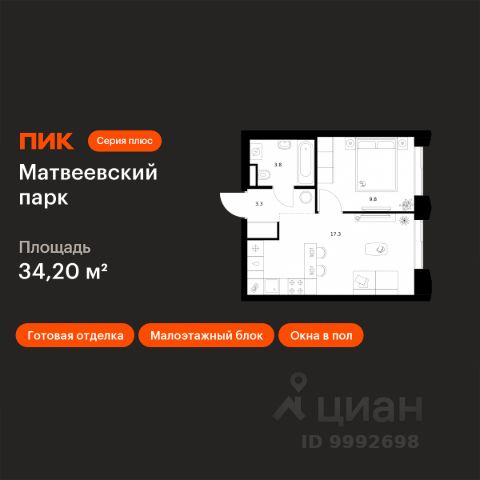 Продаётся 2-комн. квартира площадью 52,8 кв.м на 2 этаже 34 этажного дома (Корпус 1.2, Секция 2) проекта ПИК Матвеевский парк. Светлый просторный подъезд на уровне земли, функциональная планировка, большие окна, c отделкой. "Матвеевский парк" — проект "Серии плюс", расположенный на западе Москвы, в районе Очаково-Матвеевское. Ближайшая станция метро "Аминьевская" находится всего в 3 минутах пешком, а в 20 минутах — МЦД-4 "Очаково". Проект входит в состав Матвеевского кластера — современного района, где есть всё необходимое для комфортной жизни: социальная инфраструктура, парки и общественные пространства. Проект расположен в Матвеевском кластере — новом современном районе, который будет состоять из четырёх кварталов: "Матвеевский парк", "Новое Очаково", "Большая Очаковская 2" и Vangarden. Перемещаться между кварталами будет удобно по 350-метровому пешеходному мосту, под которым появится уютный зелёный парк. У проектов будет общая инфраструктура и благоустроенная территория. Уже открыта часть пешеходного бульвара, который строится по проекту британского бюро Gillespies. Здесь можно гулять после работы, играть с детьми, заниматься спортом и отдыхать у сухого фонтана с ночной подсветкой. В будущем в кластере появится пешеходный мост, который соединит жилые кварталы, и комьюнити-центр "ОМА" с магазинами, кафе, местами для спорта, встреч и общения. Отдыхать и заряжаться адреналином жители кластера смогут в SportHub Extreme — зоне площадью более 3 500 м², рассчитанной на любителей экстремальных видов спорта. Здесь будут площадки для безопасного катания на скейтбордах, роликах, самокатах и велосипедах. Для командных игр — например, мини-футбола и стритбола — появится отдельная универсальная площадка с покрытием из резины. Помимо этого, на территории "Матвеевского кластера" начнут работу пять новых школ, шесть детских садов, поликлиника и многофункциональный спортивный комплекс. Архитектурную концепцию корпусов 4 квартала разработало российское бюро KATARSIS. Акцентные белые корпуса с большими окнами делают архитектуру проекта мощной и запоминающейся. А фоновые части зданий придают образу размеренность и спокойствие. В лобби "Матвеевского парка" будет удобная зона ожидания, где можно встретить друзей, курьера или дождаться такси, а также гостевая туалетная комната и колясочная. Артикул 826159 (Застройщик ООО "СПЕЦИАЛИЗИРОВАННЫЙ ЗАСТРОЙЩИК "ЦЕНТРПОЛИС")