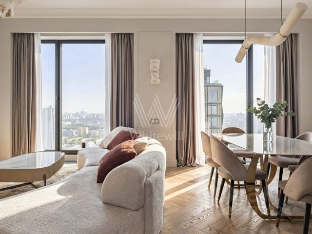 Дом сдан. Ключи в день покупки! В продаже 4-комнатная квартира площадью 132.60 м² с предчистовой отделкой на 49 этаже 49 этажного дома в корпусе Кристалл. ЖК Симфония 34 - концептуально новый жилой комплекс премиум-класса с подземной парковкой, состоит из четырех башен высотой 36 - 54 этажа. Квартиры сдаются с базовой (предчистовой) отделкой MR BASE или дизайнерской чистовой отделкой MR READY. Высота потолков 3 - 6 метров, окна высотой до 2,6 м. Более 100 кладовых в подземной части ЖК и более 500 на этажах. Безопасность - Система контроля входа на территорию комплекса, биометрия - Система автоматического водяного пожаротушения и противопожарного водопровода, система пожарной вентиляции - Доступ на парковку при помощи системы распознавания автомобильных номеров, карточка для контроля доступа резидентов - Система видеонаблюдения - Круглосуточная связь через приложение, телефон, голосовые сообщения с охраной, консьержем, call-центр. Расположение Пешком - 6 минут до метро "Дмитровская" - 15 минут до Тимирязевского парка На машине - 5 минут до Савеловского вокзала и Аэроэкспресса в Шереметьево - 10 минут до Москва-Сити и Садового кольца Благоустройство - 70% территории отведены под зеленые насаждения и ландшафтный дизайн - Приватный Японский сад - Детские площадки с зонированием по возрасту - Clubhouse для резидентов - Wellness & SPA - Зона для пикника, зона с гамаками - Центральное лобби, ресторан, коммерческие помещения - Дополнительный вход/выход на территорию комплекса Окружение - В 10 минутах от Симфония 34 находится дизайн-завод Flacon, где регулярно проходят культурно-образовательные и развлекательные мероприятия - Тимирязевский парк расположен в 850 м. Площадь парка 232 га - Рядом расположен парк "Дубки", площадью 16,5 га. - В 15 минутах расположен Хлебозавод 9. Здесь находятся шоурумы брендов, кафе разных кухонь мира, образовательные проекты и площадки для мероприятий Компания MR предлагает своим клиентам специальные условия приобретения квартир в рамках программ ипотечного кредитования от банков-партнеров.