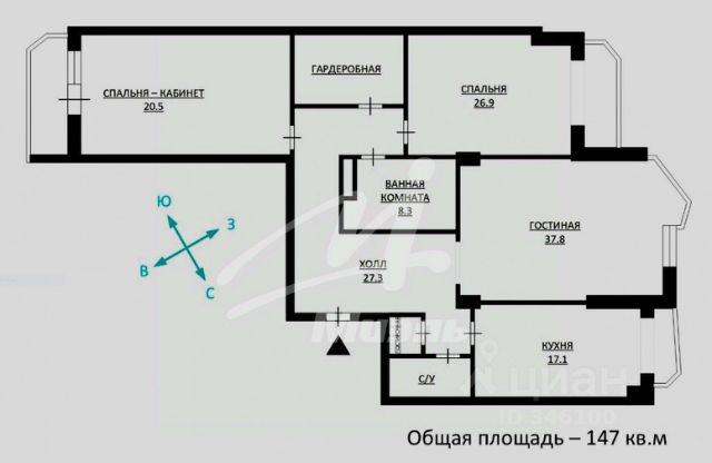 Продаётся уникальная 3-х комн. квартира площадью-156,5 м2 в ЖК Волынский.