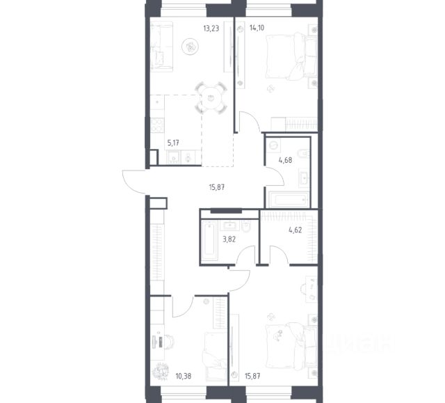 Прямая продажа от застройщика. Продаётся 2-комнатная квартира общей площадью 52 м² с предчистовой отделкой в ЖК Веер на 18-м этаже 22 этажного дома. Жилой комплекс бизнес-класса Веер от компании MR — это футуристичный мультиквартал, расположенный в престижной локации на западе Москвы. Благодаря переменной высоте башен — двух 22-этажных, 46-этажной и двух 59-этажных — возникает динамичность в силуэте комплекса, а его яркий образ вносит разноплановость в архитектурный пейзаж района. Расположение и транспортная доступность: • Веер удобно расположен в непосредственной близости от Кутузовского проспекта, обеспечивая быстрый доступ к центральным районам Москвы • Комплекс находится непосредственно напротив самого большого природного заказника в Москве - парка "Долина реки Сетунь", а за семь минут можно доехать до памятника садово-паркового искусства, Троекуровского леса. • Всего в 15 минутах - центр города, самая престижная бизнес-школа управления России "Сколково", дом творчества "Переделкино". Инфраструктура: Разнообразить свой день резиденты Веер смогут также проводя больше времени на свежем воздухе. Двор разделен на 4 зоны разных эмоций и действий, которые пересечены и соединены веерными прогулочными маршрутами: • Спортивная площадка устроена в глубине "Кленовой рощи" • В "Чайном домике" будет создан навес с утеплением для отдыха в любую погоду • Площадки для детей воплотятся в "Волшебный лес" с цветами, зеркалами и световым дизайном • "Центральная площадь" устроена у водного оазиса живописного пруда. Компания MR предлагает своим клиентам специальные условия приобретения квартир в рамках программ ипотечного кредитования от банков-партнеров.