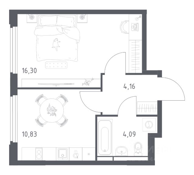 В продаже 1-комнатная квартира в корпусе 1 ЖК 'Космический Квартал'. Квартира располагается на 16 этаже, общая площадь 40.9 м2.
