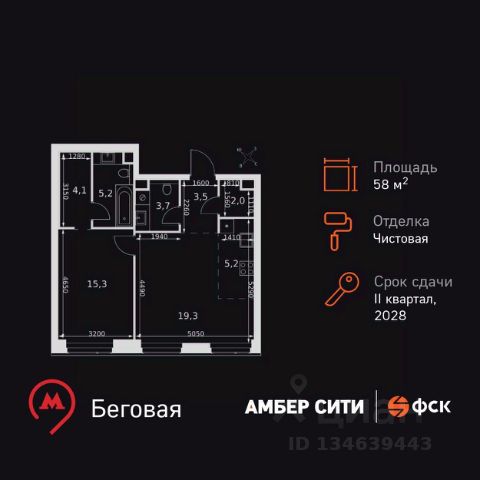 Прямая продажа от застройщика! Успейте забронировать квартиру до повышения стоимости! Жилой Комплекс премиум-класса. Продаётся 2-к квартира номер 1024 общей площадью 50.9 кв.м. на 31-м этаже 57 этажного здания. Чистовая отделка. Цена с учётом скидки. Особенности квартиры: - Организуем показ в удобное для вас время! - Мастер-зона с гардеробной. Просторное место для отдыха и удобного хранения вещей. - Линейная планировка - максимальная функциональность и удобство. - Увеличенная ширина окна/окон - больше света и визуального простора. - Увеличенная высота окна - больше воздуха и света. - Евроформат - просторное и удобное жилье с отличной планировкой. - Гибкая планировка - создайте пространство по своему вкусу. - Место для игры/занятия спортом - идеальное пространство для активных детей. - Просторная мягкая зона - комфорт и уют для отдыха всей семьи. - П-образная утопленная кухня - оптимальное решение для большой семьи. - Проходная кухня-гостиная - идеальное пространство для общения и готовки. - Гардеробная - удобство для хранения и организации вещей. - Ниша под шкаф - компактное и удобное место для вещей. Квартира с чистовой отделкой. Раскройте свою индивидуальность в создании своего уникального проекта, а трудоемкий ремонт мы возьмем на себя! Вы идете в ногу со временем и предпочитаете современные, универсальные дизайнерские решения? Или вы любитель строгой лаконичной классики? Тогда наши интерьеры придутся вам по душе! Выбирайте то, что ближе лично Вам и реализуйте свои задумки вместе с нами! Информация о комплексе: ЖК "Амбер Сити" - вдохновляющий квартал у Москва-Сити с архитектурой мирового уровня. Здесь кипит жизнь 24/7: парки, инфраструктура и виды на центр без городской суеты. Самодостаточная среда для работы, творчества и семьи в духе лучших районов Нью-Йорка и Гонконга. Транспортная доступность: Квартал с исключительной транспортной доступностью: ключевые точки Москвы в 15-20 минутах. Полное погружение в деловую и культурную жизнь столицы с минимальными затратами времени на дорогу. Общественный транспорт: - Метро "Беговая" - 5 минут пешком - Остановка "2-й Хорошёвский проезд" - 3 минуты пешком - Метро "Звенигородская" (строящаяся) - 10 минут пешком На автомобиле: - Москва-Сити - 10 минут - Звенигородское шоссе - 3 минуты - ТТК - 5 минут - Серебряный бор - 8 минут - Садовое кольцо - 12 минут - Кремль - 20 минут - Шереметьево - 40 минут Внутренняя инфраструктура: ЖК "Амбер Сити": многоуровневый ландшафт на 6 гектарах с зелёным бульваром, объединяющим арт-объекты, водные зоны и архитектурные формы. В закрытых дворах на стилобате - детские площадки с сенсорными элементами, зоны отдыха с креслами и настилами для йоги. Навесы с подогревом и зарядками для зимнего сезона. Активности на любой вкус: настольный теннис, петанк, чтение в тишине на оборудованных скамейках. Продуманное пространство для ежедневного отдыха и игр детей и взрослых. Продается квартира с евроремонтом на проезде 3-й Хорошевский в Москве.