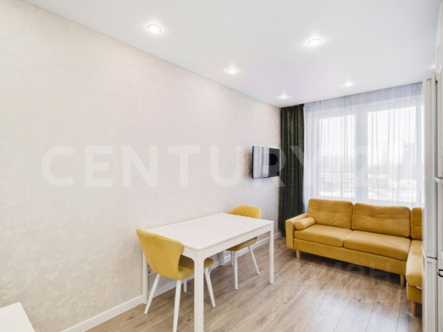 Арт. 129630473 Продается уютная квартира студия (не апартаменты) в современном монолитном доме площадью 27,6 м кв. на 9 этаже 9 этажного подъезда. Окна выходя на улицу, не солнечная сторона, в квартире есть новый кондиционер, вместительный шкаф-стенка с зоной под телевизор, в кухонной зоне имеется керамическая плита с духовкой и стиральная машина ( при необходимости эту технику готовы оставить), в прихожей установлен большой зеркальный шкаф с 3-мя отсеками для вещей/верхней одежды/обуви, при входе сделана стенка для верхней одежды,
