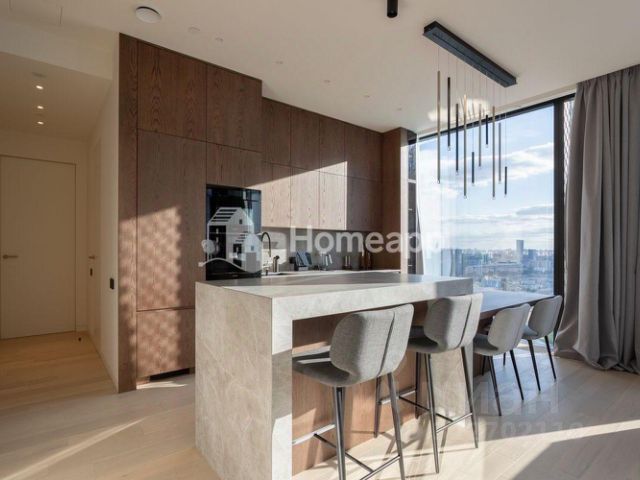 В квартире просторная прихожая 11 кв.м. со своим окном, три комнаты (гостиная 33 кв.м, спальня 22 кв.м. и детская\кабинет 14 кв.м), кухня-столовая со всей встроенной бытовой техникой Bosch и застекленным балконом, санузел 8 кв.м., в котором установлены: хаммам и гидромассажная ванная Teuco, а также водонагреватель. Окна на три стороны: из них окна кухни во двор и на Белый дом, спальня и гостиная вид на набережную и сити, кабинет и прихожая на ул. Николаева. Качественный ремонт: полы натуральный паркет, двери и подоконники массив дуба, встроенная мебель вся из натурального дерева, в санузле и кухне полы с подогревом. В квартире установлены современные деревянные стеклопакеты, оснащена системами кондиционирования в каждой комнате, вся фурнитура и замки Италия. Квартира с потолками 3,2 м. Благодаря высоким потолкам и большим окнам комнаты наполнены светом и ощущением воздушности, и атмосферой комфорта.