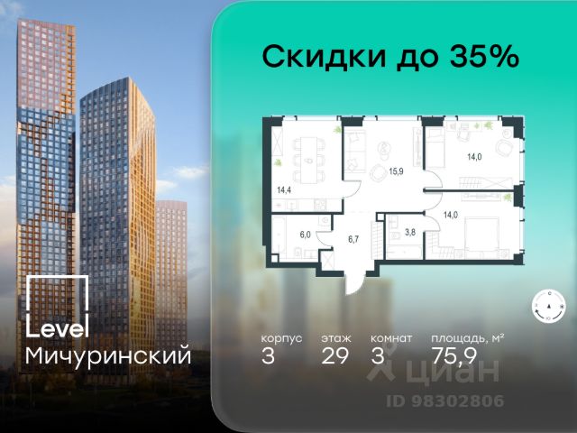 Продается просторная квартира площадью 179.40 м2 в жилом комплексе РЕКА. Квартира находится во 2 секции корпуса 2 введен в эксплуатацию в 4 кв. 2023. Этаж 10-й из 12. В квартире продуманная функциональная планировка с просторной кухней 16.20 м2. Жилая площадь 99.50 м2. Высота потолка от 3,65 м. Изолированные комнаты, 4 санузла(1 раздельный и 3 совмещенных). Окна на противоположные стороны. Виды на природный парк и реку. РЕКА - клубный дом от Донстрой на западе Москвы, у границы природного заповедника "Долина реки Сетунь", по соседству с МГУ и МГИМО, дипломатическими представительствами зарубежных стран. В 5 минутах ходьбы находится станция метро "Мичуринский проспект", от которой до центра можно доехать за 15 минут. Также 15 минут понадобится, чтобы добраться на автомобиле до Садового кольца. Прямо из дома можно попасть в природную часть грандиозного парка "Событие". Здесь созданы детские игровые площадки "Луг" и "Лес", большая воркаут-зона, поле для командных видов спорта, площадка для пикников, смотровые площадки с великолепными видами, летний амфитеатр для лекториев и летняя школа. Архитектурный проект дома выполнен в стиле современной классики: фасады с облицовкой из натурального камня и металлическими декоративными элементами. В доме представлены элитные клубные резиденции. Одна из секций целиком состоит из квартир с финишной авторской отделкой: дизайнерские интерьеры, итальянские кухни, премиальная бытовая техника и сантехника. В наличии имеются пентхаусы с террасами и каминами. В непосредственной близости от дома предусмотрены школы, детские сады, магазины, фитнес-центры, кафе и рестораны, медицинские центры - все, что необходимо для жизни. Закрытый двор без машин обеспечен круглосуточной охраной и системами контроля доступа. Двор создан как ландшафтное продолжение окружающих природных парков и зонирован для различных видов отдыха, детских игр, занятий спортом. Работает шоурум. Позвоните и запишитесь на показ квартиры. Купить квартиру с евроремонтом рядом с метро Мичуринский проспект.