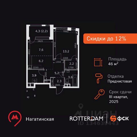 Прямая продажа от застройщика! Жилой Комплекс бизнес-класса. Продаётся 2-к квартира номер 15 общей площадью 46.4 кв.м. на 4-м этаже 29 этажного здания. Отделка Whitebox. Цена с учётом скидки. Особенности квартиры: - Мастер-зона с гардеробной. Просторное место для отдыха и удобного хранения вещей. - Линейная планировка - максимальная функциональность и удобство. - Линейная планировка - максимальная функциональность и удобство. - Увеличенное количество окон - дополнительное освещение и свежий воздух. - Постирочная - организуйте пространство для стирки и сушки вещей. - Гардеробная - удобство для хранения и организации вещей. - Ниша под шкаф - компактное и удобное место для вещей. - Лоджия - уютное место для отдыха и тишины. Квартира с предчистовой отделкой (White box). Вам не придется заниматься черновыми и трудоёмкими работы, а чистовую отделку и дизайн - сделайте на свой вкус. Информация о комплексе: В ЖК Роттердам отличное расположение, которое позволит вам выбирать свой сегодняшняшний маршрут и транспорт исходя из настроения, целей и погоды. Отсюда удобно добираться в центр как на метро станция находится в пешей доступности, так и на автомобиле. Варшавское шоссе связывает жилой комплекс с ТТК, а через Люсиновскую и Мытную улицы с Садовым кольцом. В качестве альтернативного маршрута можно использовать Нагатинскую набережную: дорога вдоль Москва-реки приведет к Кремлю и Павелецкому вокзалу. Для неспешной поездки предусмотрены трамвайные маршруты, а в теплое время года веломаршруты вдоль реки. Транспортная доступность: Всего в 5 минутах пешком до метро Нагатинская и 8 минутах от МЦК Верхние Котлы. Рядом Аэроэкспресс до метро Домодево. До ТТК 2,2 км и 4,9 км до Садового кольца. Внутренняя инфраструктура: Если вы ищете идеальный баланс между отдыхом и работой и обладаете активной жизненной позицией - ЖК Роттердам вам понравится. В ЖК: зоны коворкинга, плейхаб и детские площадки для отдыха всей семьей. Близость к деловому центру Москвы, в окружении 5 парков, рядом спортивные и развлекательные центры Если вы любите живописные виды и долгие прогулки - ЖК Роттердам - отличный вариант для вас, так как он расположен прямо на Нагатинской набережной с выходом на Москву реку! В ЖК Роттердам соблюден баланс между высоткой и малоэтатажным зданием, которое не потеряло ощущение уюта и не создает впечатление городских джунглей Если вы любите быть на высоте и без ограничений - выбирайте верхние этажи Для тех, кто ценит комфорт и собственное время Для тех, кто ценит комфорт и личное пространство Для тех, кому важен комфорт, безопасность и личное пространство на предомовой территории Продается квартира с евроремонтом рядом с метро Нагатинская.