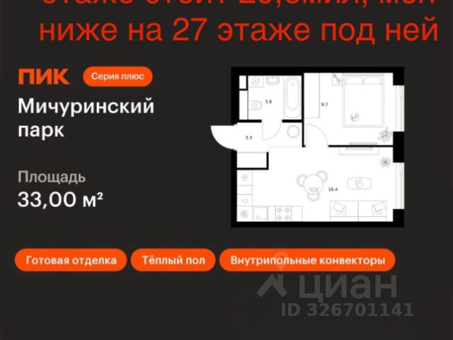Продаётся студия в корпусе 4, общей площадью 21.29 м², на 16 этаже. Строительство корпуса завершено. Срок ввода — июль 2026 года. В 2026 году запланирован перевод корпуса в жилой фонд, что позволит собственникам оформить постоянную регистрацию в Москве. МФК "CITIMIX" — студии комфорт-класса, расположенные в районе Тропарёво-Никулино в Западном административном округе Москвы. Комплекс включает в себя пять 21-этажных корпусов и собственный парк между ними. Архитектурный облик комплекса, разработанный бюро "ADM", выполнен в современном стиле, а для наружной отделки, уникальной для каждого здания, использовались керамогранитные плиты разных оттенков, витражное остекление и натуральный камень. Все студии в новостройке оснащены современным оборудованием, включая счетчики с возможностью автоматического сбора данных. Во всех подъездах спроектированы уютные лобби-зоны и индивидуальные кладовые. Наличие обширного паркинга, где могут разместиться более 650 автомобилей, позволит закрыть зеленый дворик новостройки для проезда машин и обеспечить жителям уютное, комфортное пространство для семейного отдыха. Первые этажи займут коммерческие помещения, предназначенные для социально-бытовых объектов. В 10 минутах ходьбы расположен парк Школьников, на территории которого есть Очаковские пруды и протекает река Очаковка. В пешей доступности расположен еще один зеленый массив - Тропарёвский лесопарк, занимающий площадь в 218 га. Здесь проложены дорожки для велосипедистов, роллеров и бегунов, обустроены детские площадки и зоны отдыха. Рядом с комплексом находятся детские сады, школа, медклиника, центр развития ребенка, магазины, кафе и отделения банков. Идеальный вариант для студентов, т.к. City-комплекс расположен с такими университетами, как: РАНХиГС, РУДН, РТУ МИРЭА и РНИМУ им. Н.И. Пирогова. МФК "CITIMIX" находится в 1,5 км от станции метро "Озерная" и 2,4 км от станции метро "Юго-Западная. Автомобилистам будет удобно воспользоваться выездом на МКАД (3,2 км). Застройщиком квартала выступает компания APSIS GLOBE, основанная в 2008 году. В качестве девелопера компания успешно завершила ряд инфраструктурных, коммерческих объектов на территории Московской области, Москвы, Санкт-Петербурга.