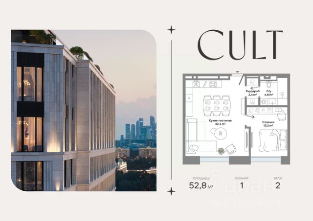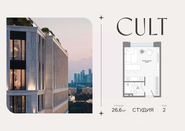 Продается Студия площадью 27 кв.м. на 2-м этаже 9-этажного Клубного дома CULT. Высота потолков 3,2 м. Клубный дом CULT на Якиманке, где открывается редкая панорама на башни Кремля и главную высотную доминанту современной Москвы — небоскрёбы Сити, сталинские высотки и Храм Христа Спасителя, живописные парки и водную гладь реки. Элегантный внешний вид проекта — результат профессиональной работы международного архитектурного бюро СПИЧ. Быть его резидентом — значит выбирать совершенство. Клубный дом CULT в списке лучших элитных проектов Москвы по версии Forbes, Robb Report, Urban Awards и премии "Рекорды рынка недвижимости" Продается квартира с евроремонтом рядом с метро Парк Культуры.